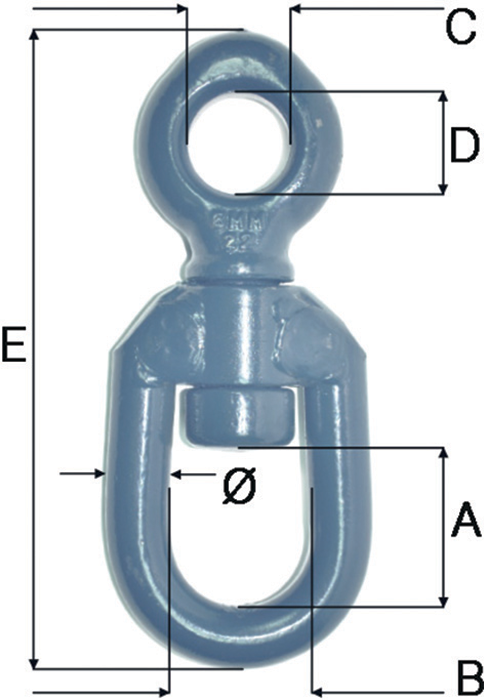 Blueline forged eye-eye swivels in FOC model, available in a range of sizes and maximum working load limits.